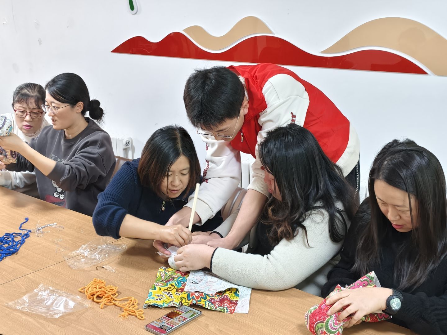 手工制作环节中,志愿者手把手指导老人们完成艾草处理、包裹塑形、缠绕固定等步骤。大家专注投入、相互交流,亲手将艾草与布料转化为具有实用价值的养生锤。老人们表示活动既便民又有趣,不仅学会了技能,感受了传统文化魅力,还期待更多同类养生主题的活动,并积极分享了相关需求与建议。