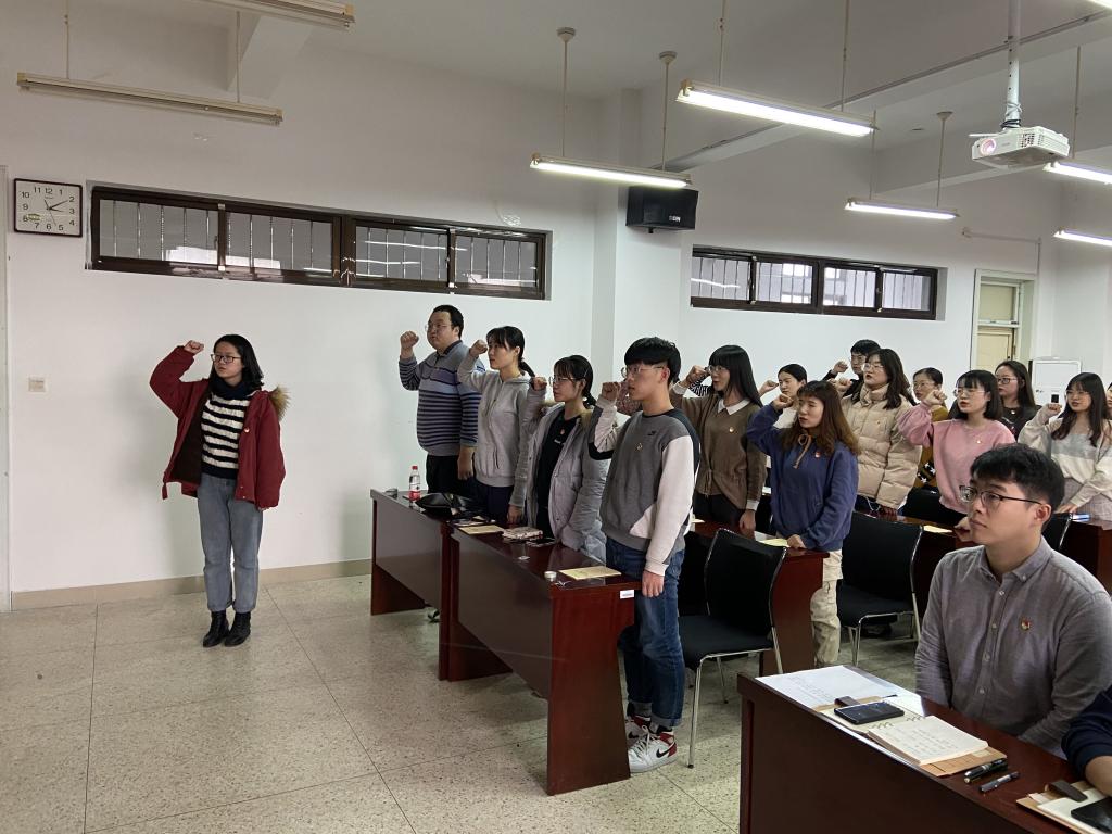 本站讯12月13日下午,bat365于图东环楼304举行新党员入党宣誓仪式。bat365党委副书记王鹏飞,辅导员王祎璠、赵德豪、王紫山及全体本科生党员参加了此次仪式。仪式由王祎璠主持。