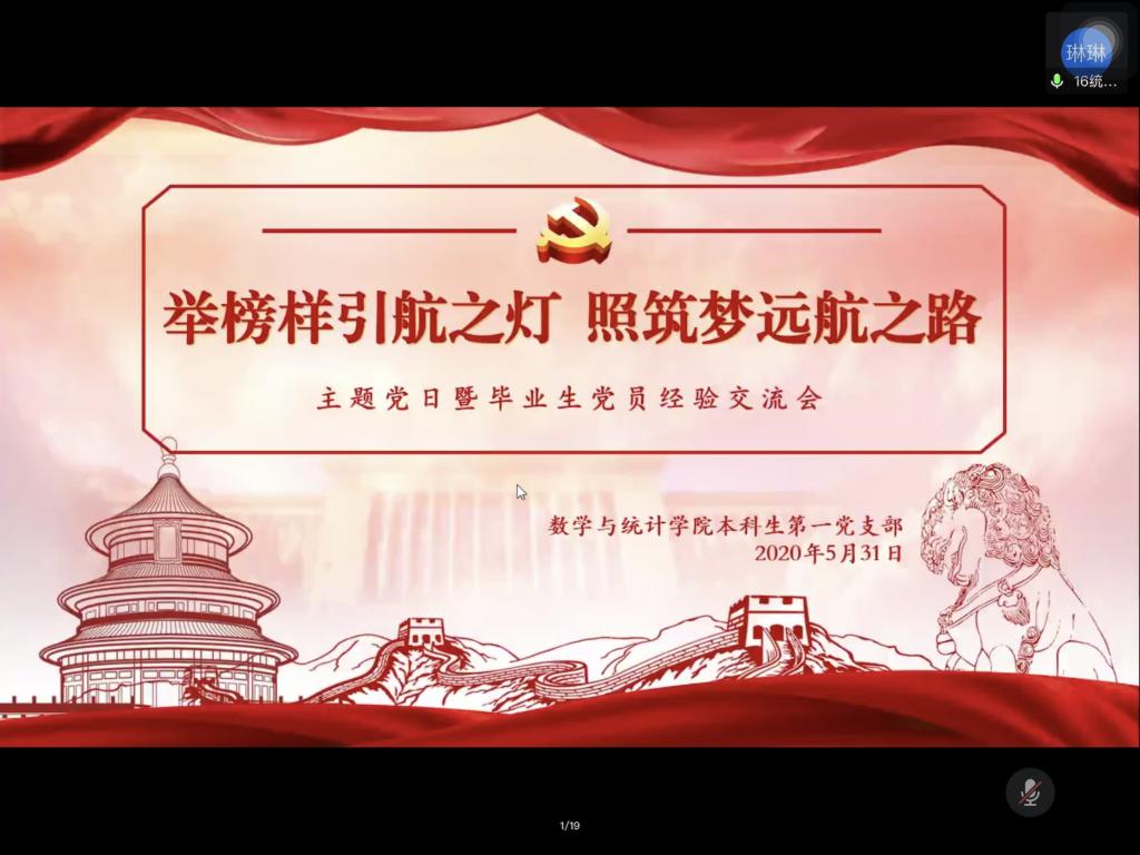 本站讯 为树立党员先锋,传递榜样力量,5月31日上午,bat365本科生第一党支部通过腾讯会议开展了“举榜样引航之灯,照筑梦远航之路”主题党日暨毕业生党员经验分享会。学院本科生第一党支部全体党员、部分入党积极分子参加了会议。