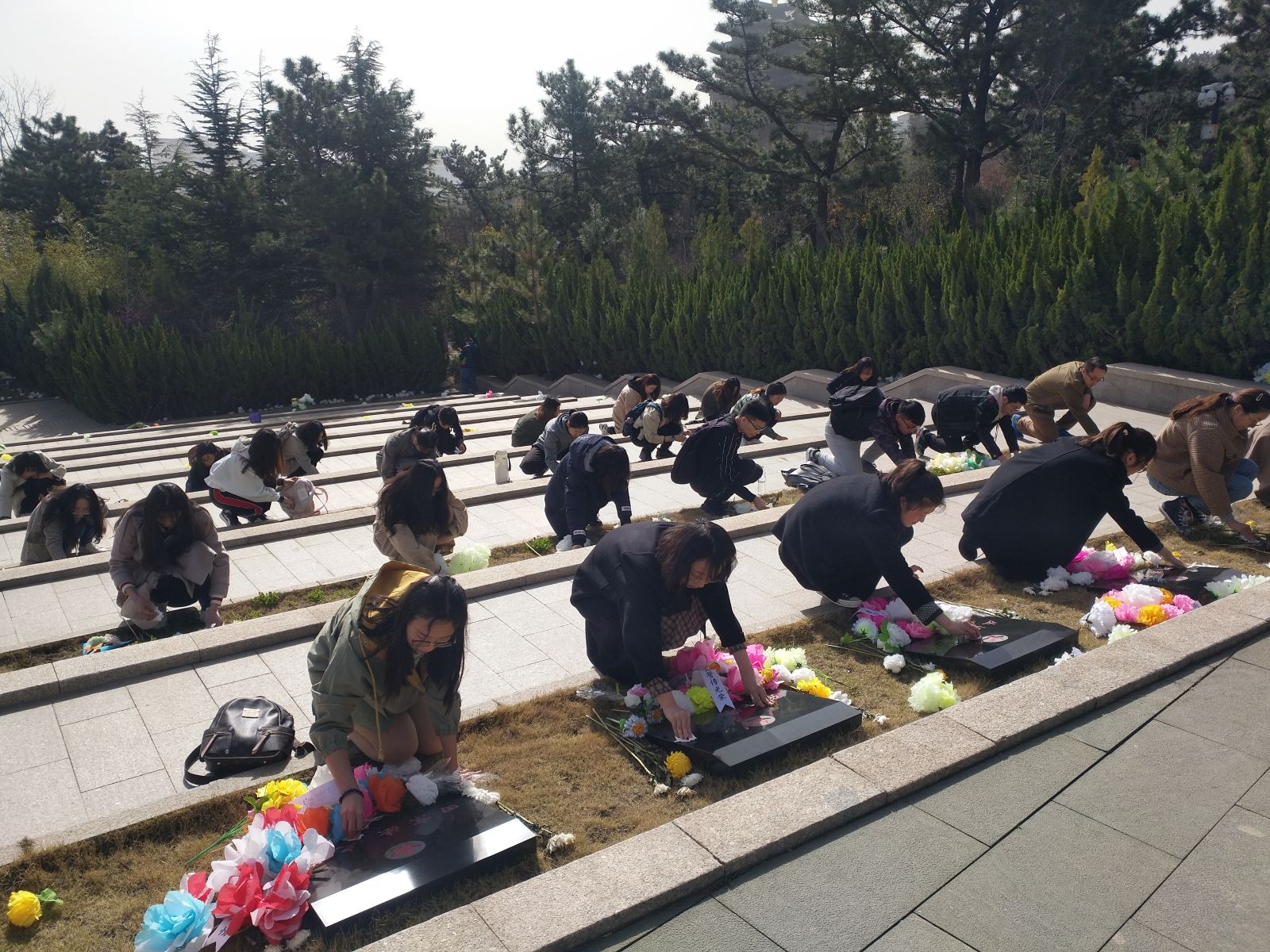 4月5日上午八点,学生党员统一乘车来到威海市烈士陵园,在孙磊同志、曹继中同志的带领下,举行第一项议程:向英烈默哀三分钟,全体立正,静默致哀。默哀结束后,大家以三鞠躬向英烈致以最深的敬意,礼毕,学生党员开始擦碑献纸花。随后,赵丽梦同志作为党员代表发言,表达对英烈的缅怀与敬仰。她提到,3月30日,四川省凉山州木里县境内发生森林火灾,救火行动中,突发林火爆燃,30名救火人员牺牲。无论是革命年代抛头颅、洒热血的英雄烈士,还是在和平年代保护我们生命安全的人民护卫,我们都向他们致以崇高的敬意与深深的缅怀。学生党员对30名救火英雄进行了悼念。最后,由王浩宇同志担任领誓人,全体党员重温入党誓词,不忘入党初心,牢记党员使命。
