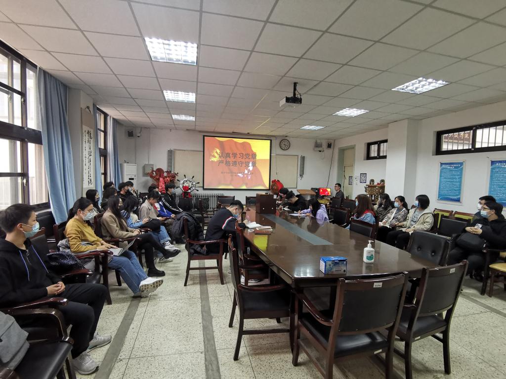 本站讯 为开展好党史学习教育,3月26日下午,bat365在线中国官网登录入口本科生第二党支部于图东环楼208室召开会议,组织开展主题党日活动。本次活动以“认真学习党章,严格遵守党章”为主题,党支部书记孙磊主持此次活动。
