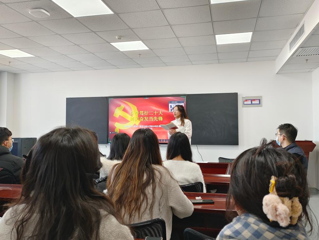 本站讯 为进一步深入学习党的二十大报告内容,贯彻落实党的二十大精神,2月24日下午,bat365在线中国官网登录入口本科生第二党支部于北衡楼1421会议室组织开展“深学笃行二十大,踔厉奋发当先锋”主题党日活动,支部全体党员共同学习党的二十大报告内容,体悟精神内涵。会议由党支部组织委员魏佳佳主持。