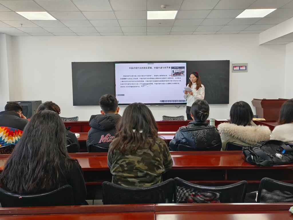 活动伊始,与会党员一起观看学习视频,从坚持全面依法治国、推进文化自信自强、增进民生福祉三个方面深入学习二十大报告。随后,党支部组织委员魏佳佳从中国式现代化切入,分析中国式现代化的现实逻辑、丰富内涵和世界意义,增强学生党员的理论素养。教师党员王紫山结合生活中的例子作为补充,使理论更贴近生活,通俗易懂。最后,各位党员结合日常生活中的真实案例和学习视频后的感悟,从文化自信、科教兴国、人才强国等许多方面分享交流学习心得,各抒己见。