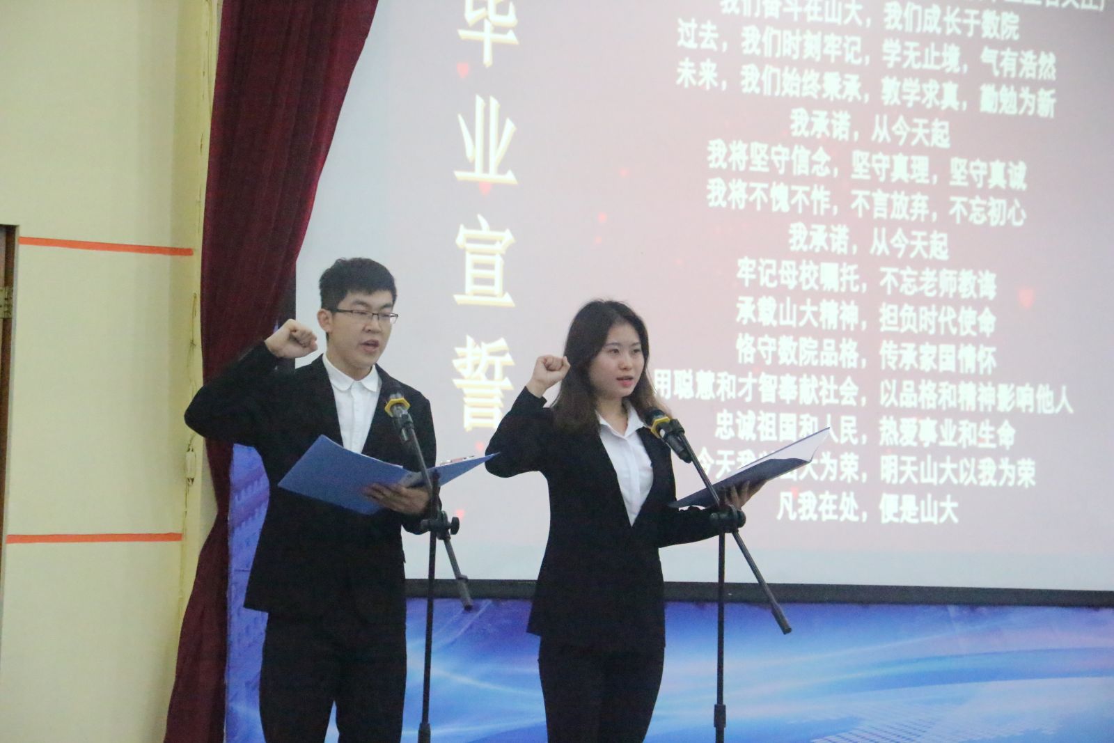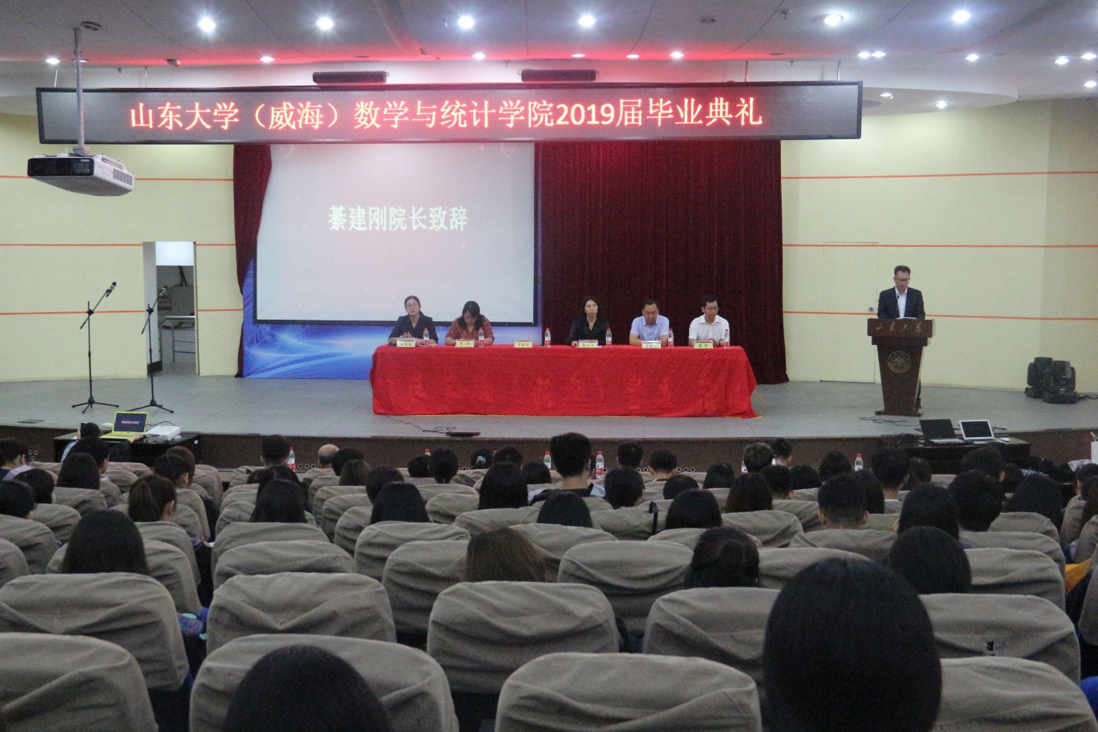 毕业典礼上,全体起立奏唱国歌。綦建刚院长致辞,他对2019届毕业生完成学业表示祝贺,肯定了毕业生取得优异成绩。同时,綦院长对毕业生提出了三点期许:保持一份进取之心,脚踏实地,追求卓越;坚守一份责任之心,甘于奉献,勇于担当;保有一份包容之心,海纳百川,有容乃大。统计系王效强作为教师代表发表讲话,他祝贺毕业生顺利完成学业的同时,表达了对大家的祝福,希望毕业生在未来能保持学习的热情,甘于奉献,踏实勤恳,勇担山大数学人的时代责任。随后,毕业生代表2015级统计专业曹继中上台发言,她和同学们分享了自己大学四年的感触与收获,表达了对母校、学院以及老师同学们的感激之情,表示定将不负母校的嘱托,始终以“学无止境、气有浩然”为精神指引,勇做新时代的弄潮儿。在校生代表2016级数学与应用数学专业张敏发言,她对学长学姐在校期间的悉心帮助表达了感谢,表示在校生会以学长学姐为榜样,对理想不懈追求,争当时代先锋。典礼上,单丙波宣读了山东省和bat365在线中国官网登录入口优秀毕业生名单,学院领导为省级优秀毕业生、校级优秀毕业生进行颁奖。最后,全体毕业生进行庄严宣誓,奏唱校歌。