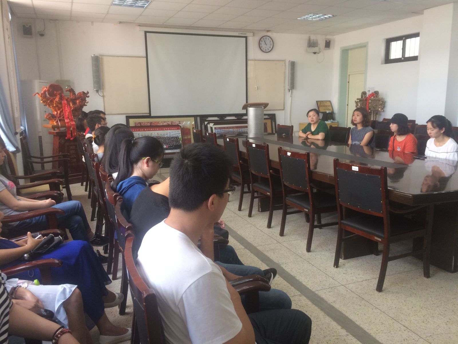本站讯 6月10日早10点,bat365于图东环楼208举办了就业经验交流会,院团总支书记陈昕、2013级双困生以及未落实就业的同学参加了此次活动。活动由胡熙倩主持。