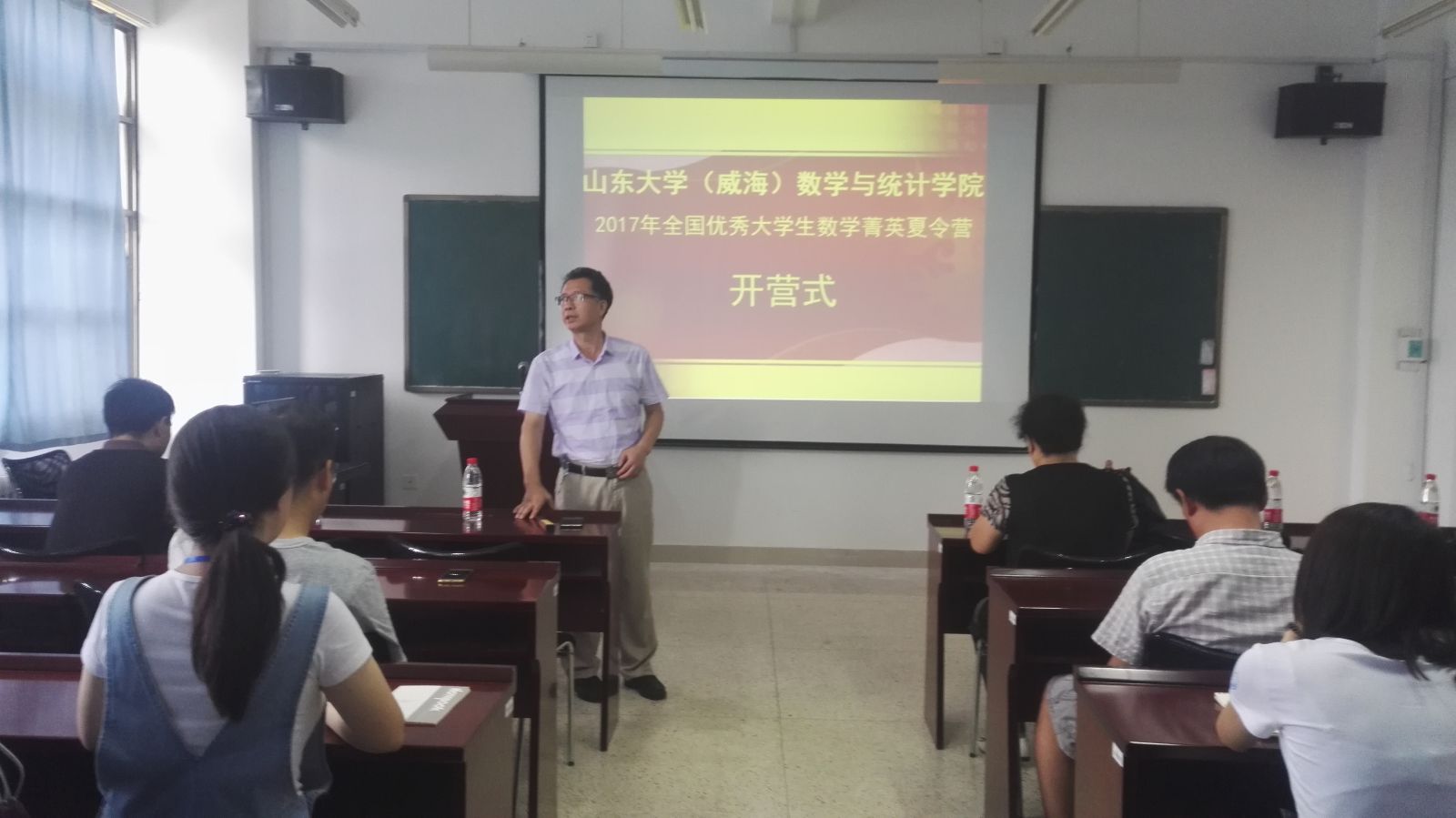 本站讯 7月20日上午,bat365在图东环楼304室举办了“2017年全国优秀大学生数学菁英夏令营”开营仪式。学院常务副院长綦建刚、党总支书记栗庆冬、副院长李娟、副院长齐海涛,以及来自全国8所高校的11名优秀大学生参加了仪式。开营仪式由李娟主持。