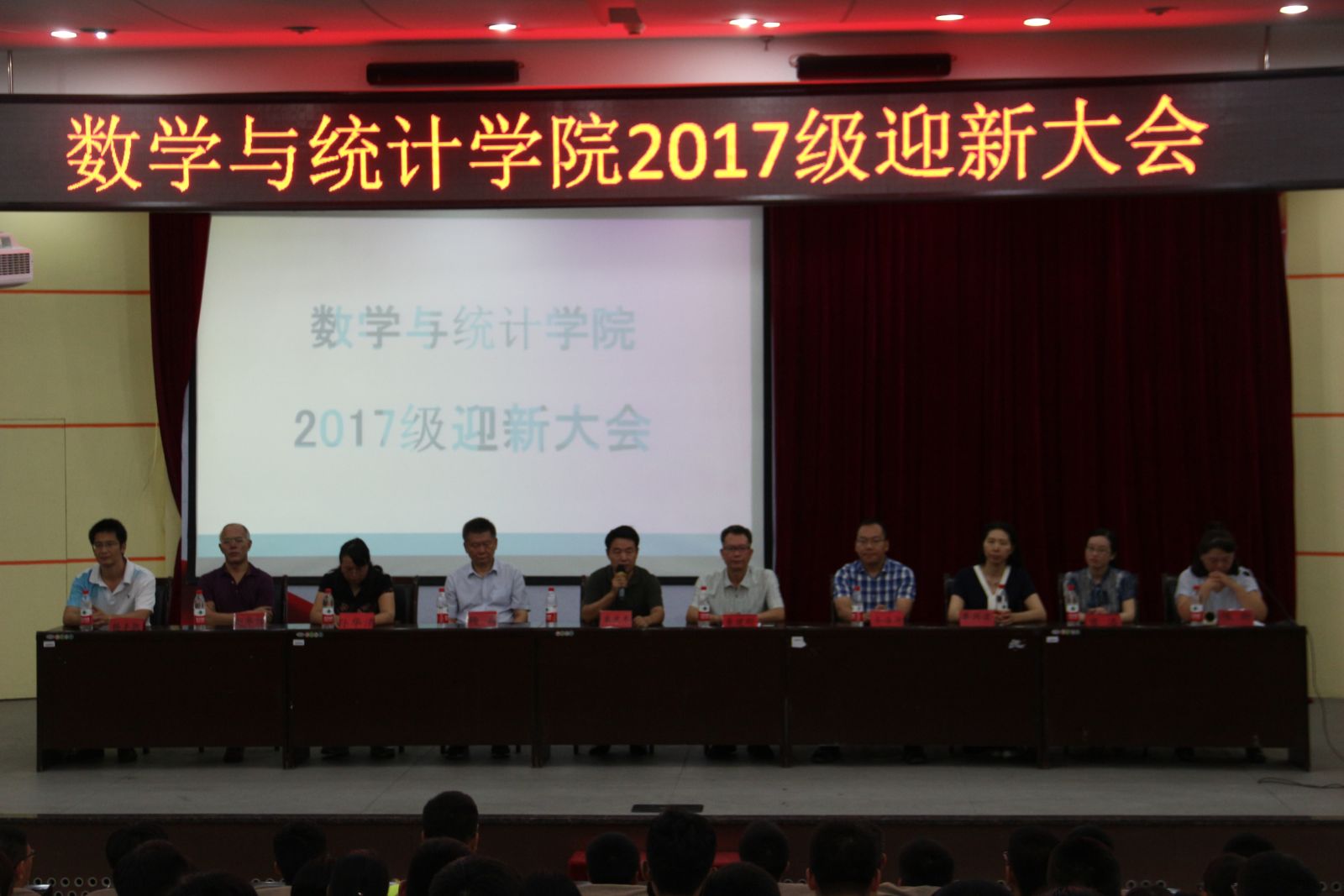 本站讯 2017年9月10日,bat365于玲珑学堂举办2017级迎新大会。学院常务副院长綦建刚,党总支书记栗庆冬,副院长齐海涛、杨兵、党组织副书记单丙波,各系主任和辅导员以及2017级全体新生参加了本次大会。会议由2017级新生辅导员陈昕主持。