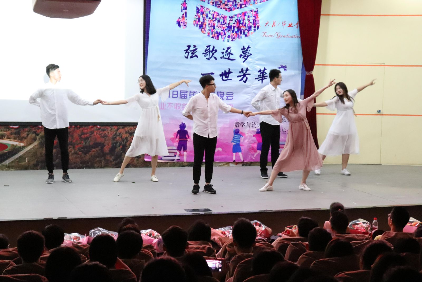 毕业生晚会以“邂逅玛珈·初相见”、“四载韶华·转瞬间”、 “繁花相送·永不散”为线索,分三幕展开。晚会伊始,令人热血沸腾的开场舞《Good time&Good boy》引爆全场,拉开晚会的序幕。在第一幕“邂逅玛珈·初相见”中,歌曲《因你而在》、《青春纪念册》悠扬动听,让大家沉浸其中;小品《我与山威的那些小事》诙谐幽默,唤起了毕业生们的无限回忆,赢得阵阵掌声;班歌合唱《没有什么不同》青春洋溢,展示了同学们的的热情与活力。第二幕“四载韶华·转瞬间”通过多种形式展现了大学四年的美好生活,将全场的气氛推向高潮,台下掌声雷动,欢呼不断。合唱《栀子花开》带来无限温情;《数院奥斯卡颁奖之夜》幽默风趣,展现数院学子风采;独唱《山丘》点燃全场气氛,台下观众随旋律摆动。在第三幕“繁花相送·永不散”中,舞台剧《Day of Youth》让大家享受视听盛宴,赢得全场欢呼;合唱《你曾是少年》及歌曲《山威之缘,四年之恋》道出离别的感伤;辅导员孙磊、程妍与同学合作的朗诵《扬帆远航》寄托了对毕业生的真切希冀与深深祝福。晚会在深情的合唱《再见》中落下帷幕。