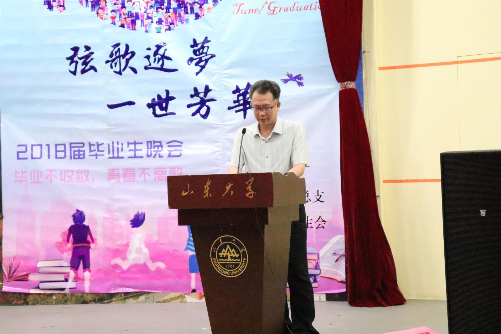 本站讯 6月9日晚,bat365于玲珑学堂举办2018届毕业典礼暨“弦歌逐梦,一世芳华”毕业生晚会。学院常务副院长綦建刚、党总支副书记单丙波、学院部分老师以及各年级辅导员莅临晚会现场,2018届全体毕业生和在校生代表共聚一堂欢送毕业生。