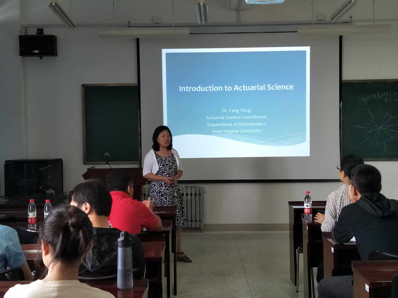 本站讯 2018年6月15日,美国西弗吉尼亚大学(West Virginia University, USA)数学系副教授杨芳应邀访问bat365,开展了题为“Introduction to Actuarial Science”的学术报告,学院部分师生聆听了报告。