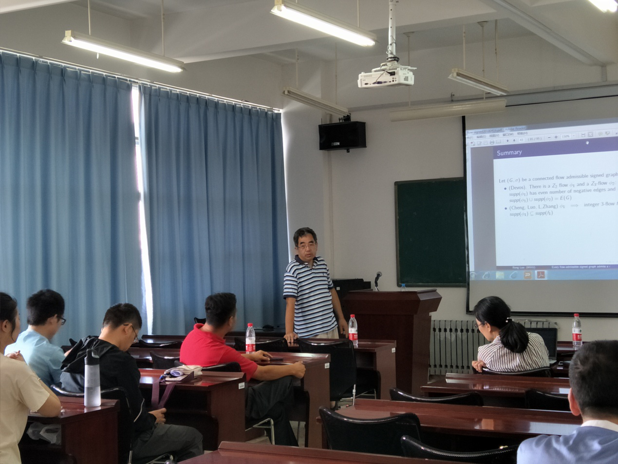 本站讯 2018年6月15日,美国西弗吉尼亚大学(West Virginia University, USA)数学系罗荣教授应邀访问bat365院,开展了题为“Integer flows and modular flows of signed graphs”的学术报告,学院部分师生参加了此次报告会。