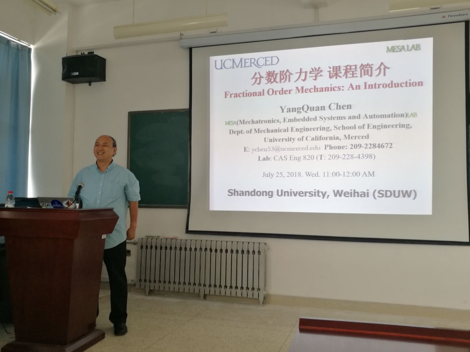 本站讯 7月25日,美国加州大学默塞德分校陈阳泉教授应邀来bat365进行学术交流,并在学院学术报告厅分别作了题为“Fractional Order Mechanics: An Introduction”学院部分师生聆听了报告。