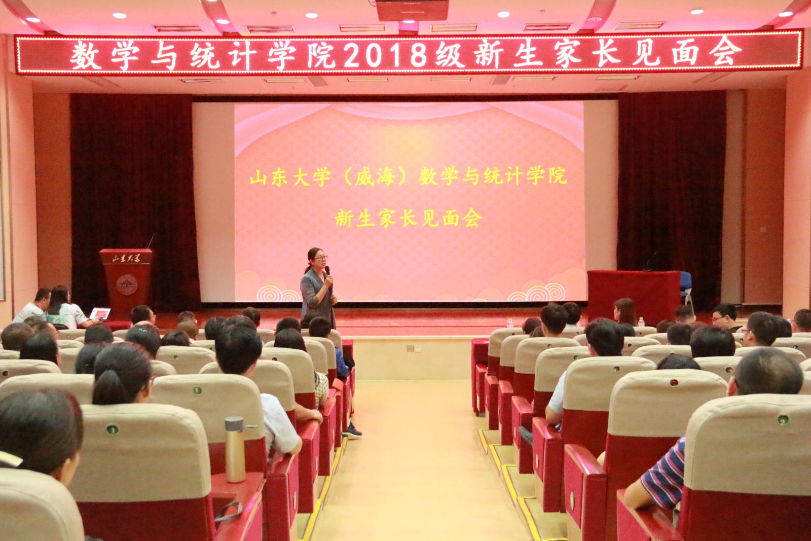 在bat365在线中国官网登录入口(威海)宣传片、学院宣传片播放结束后,王鹏飞宣布新生家长见面会正式开始。会上,学院党委书记单丙波代表学院致辞,对新生和家长的到来表示了热烈的欢迎,对学院的师资力量、人才培养特色与成效、学院成绩等方面进行了简要介绍。单丙波指出,在bat365在线中国官网登录入口“双一流”建设和一体化发展战略下,学院发展迎来了新的契机,学院有信心、有能力与家长通力合作、共同努力,以更好的姿态回馈家长的信任。在家长提问环节,分管教学院长和辅导员就课程设置、第二课堂培养、就业方向等问题进行了耐心解答,现场气氛热烈。新生辅导员孙磊针对学校的资助管理体系、奖学金评定办法等政策向家长进行了说明。最后,王鹏飞从自身经历出发,分享了自己关于教育的体会,同时强调了校园安全等问题,希望家长知晓理解、合作沟通,为学生的成长一同努力。