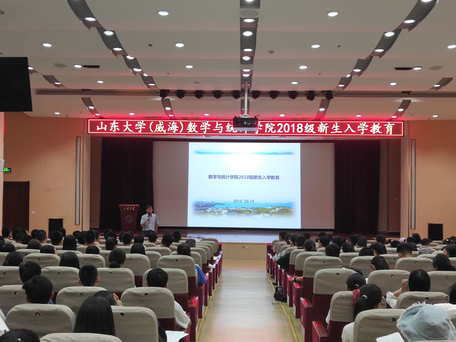 本站讯 9月10日上午,bat365于闻天楼东报告厅举办了“璀璨金秋季,梦圆数学院”2018级新生适应教育,2018级全体同学参加会议,会议由辅导员孙磊主持。