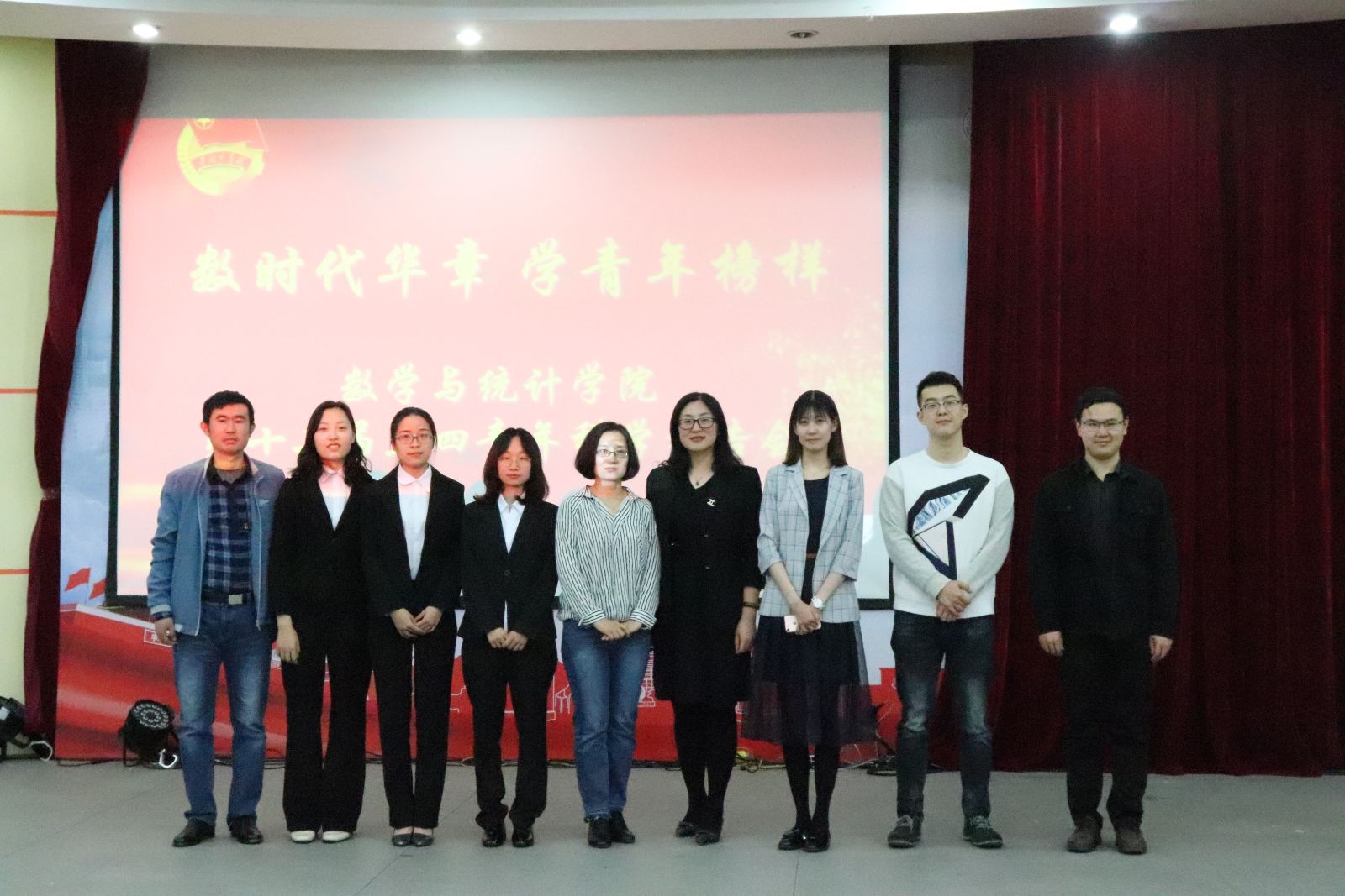 本站讯 为纪念“五四运动”一百周年,弘扬五四精神,向青年榜样学习,5月12日下午,bat365在线中国官网登录入口于玲珑学堂举办“数时代华章,学青年榜样”第十二届五四青年科学报告会。学院博士生导师亓兴勤教授,党委副书记王鹏飞,辅导员孙磊、王祎璠、王紫山和赵德豪出席会议,2017、2018级全体同学参加。