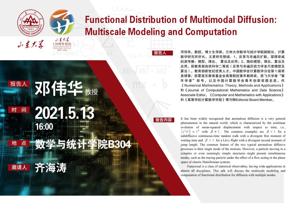 Functional Distribution of Multimodal Diffusion: Multiscale Modeling and Computation