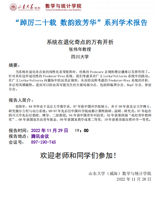 学术报告:系统在退化奇点的万有开折