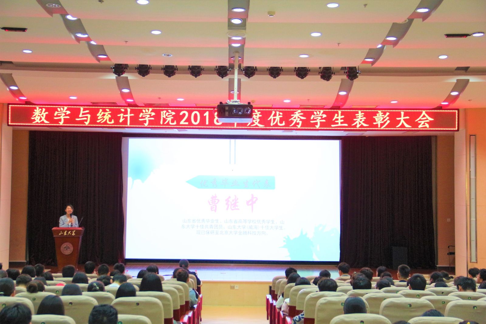 本站讯    6月6日下午,bat365于闻天楼东报告厅举办“传承时代之光,奏响青春乐章”2018年度优秀学子表彰大会。学院党委书记单丙波,党委副书记王鹏飞,辅导员孙磊、赵德豪出席会议,2017、2018级全体同学参加。