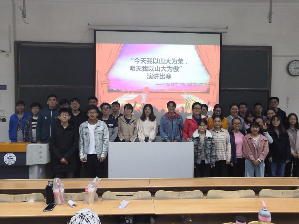 本站讯 10月25日下午2点钟,2017级数学与应用数学班在图东122开展了“今天我以山大为荣,明天山大以我为傲”演讲比赛,本次比赛是班级主题教育立项的一个环节,由团支书张驰组织,全体同学参加。