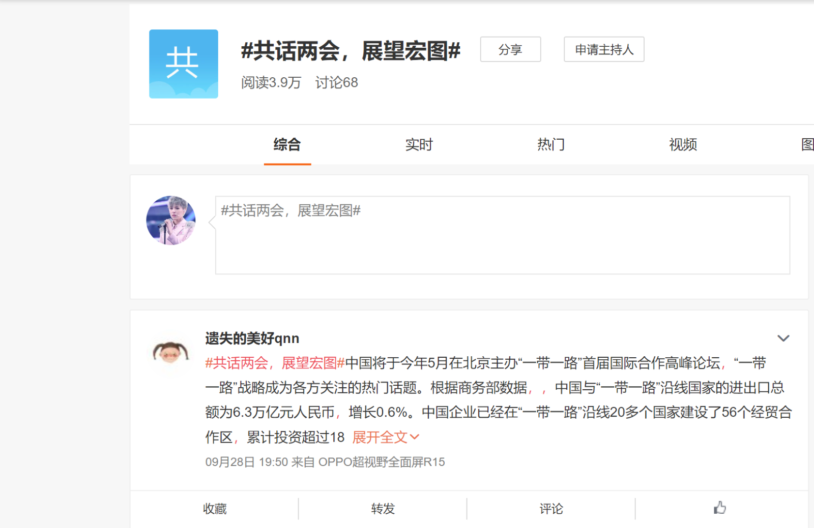 10月2日至10月7日,支部成员在微博上进行为期六天的交流。每一天,各组都会派出一名成员在“#共话两会,展望宏图#”话题下分享自己与队友的交流两会热点的心得。各组成员都积极参与其中,就“经济增长目标”、“混改提速”、“农业供给侧改革”等两会热点话题发表见解,并在每条微博下@支部官方微博、院微博。支部官方微博每天择优转发。活动结束后,根据活动的参与情况,我们根据同学们的参与情况对活动作出点评。至此,本次活动落下帷幕。