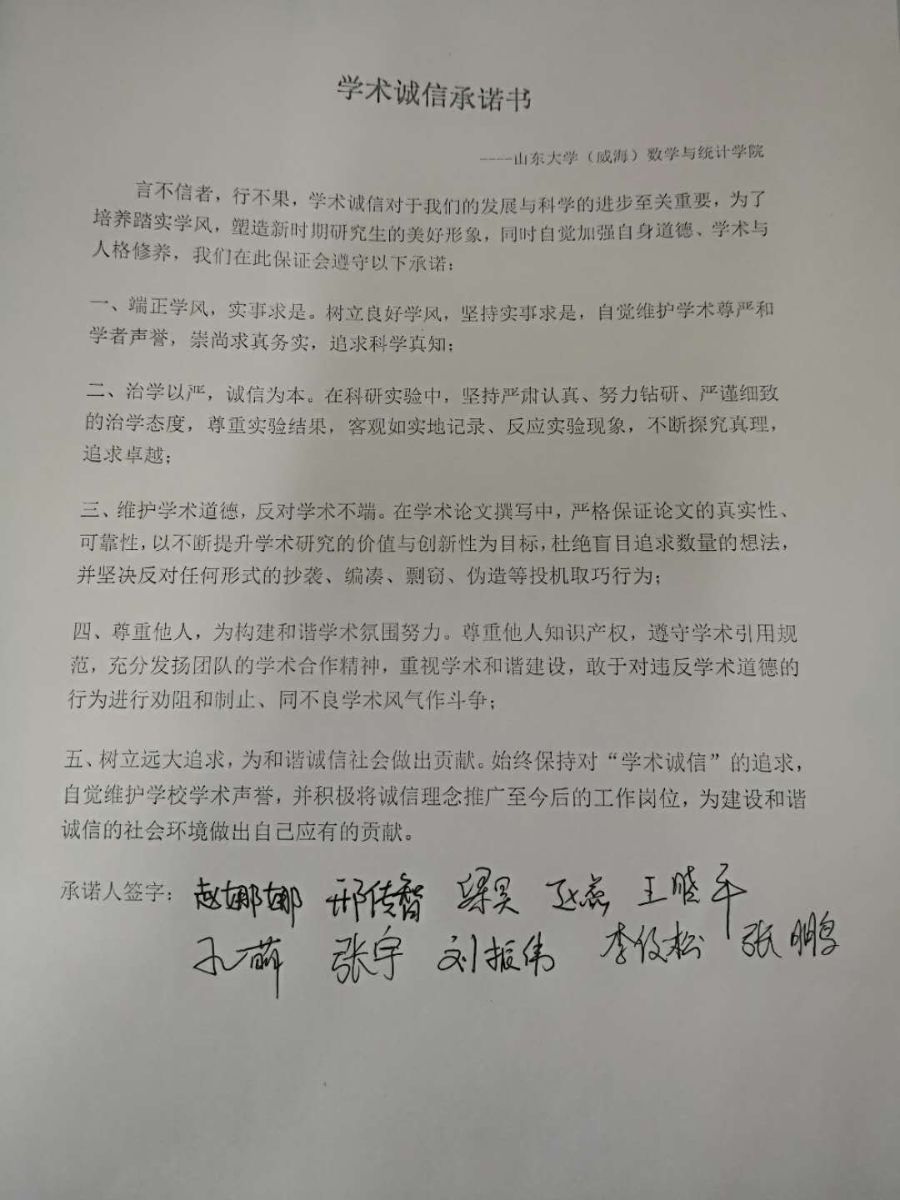 本站讯 2018年5月,bat365研究生积极响应“学术诚信教育活动”号召,为践行学术诚信,遵守学术道德,开展了“学术诚信主题班会”、“线上学术诚信倡议书转发”、“签署学术诚信承诺书”等系列活动,要求研究生思想上树立诚信的意识,行为上恪守诚信的品质。