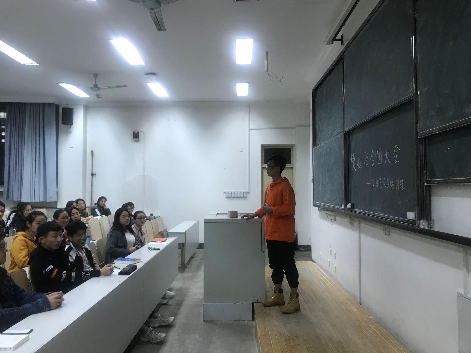 本站讯 2018年5月27日19点,2017级信息与计算科学班于图东教学楼319举办了“唇枪舌战,拟大国外交” 模拟联合国大会。本次活动由团支书张佳珺主持,2017级信息班全体同学参加。