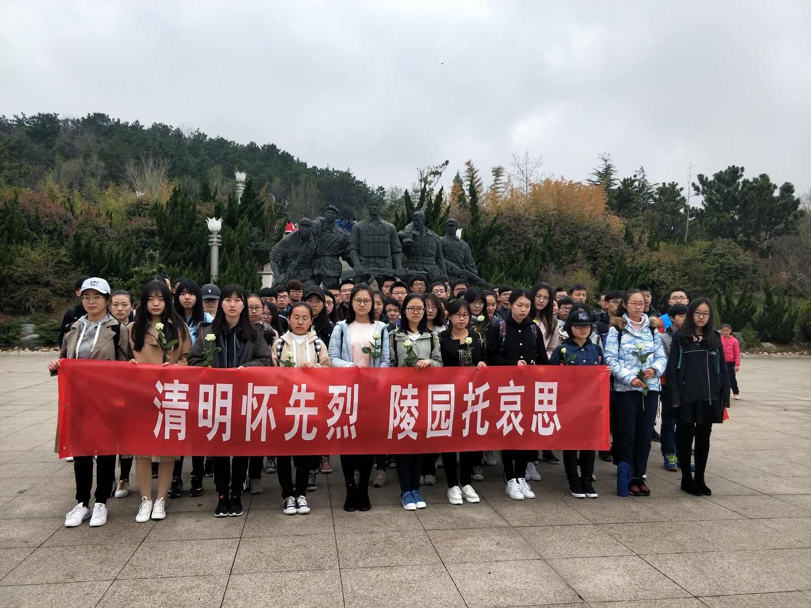 本站讯 2018年4月5日上午,2017级统计一班和2017级信息与计算科学班在威海市烈士陵园举办了“暮雨清明,心怀先烈”烈士陵园扫墓活动,2017级统计一班与2017级信息与计算科学班的同学们共同参与了此次活动。扫墓活动由统计一班班长戴天策、信息与计算科学班张卓良共同主持。