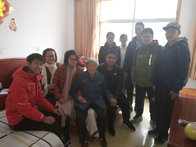 首先,同学们进入敬老院。老人看到同学们后,十分热情,与同学们进行了亲切的交流。一位老人在交谈中不断对同学们说你们是国家的人才,一定要努力读书报效国家。这位老人追忆了早年一些艰苦生活,又与现在相对优渥的生活对比,她亲身经历了国家经过改革开放由贫穷到富裕的过程。同学们深受触动,也意识到了今天生活的来之不易。另一位奶奶性格相对内向,但仍然十分欢迎同学们,这位奶奶热爱唱歌,一展歌喉唱了一首红色老歌,歌中所蕴含的历史感和力量给同学们留下深刻印象。而同学们也表演了自己准备的歌曲节目。一段时间后,同学们依依不舍的离开了这两个房间,在管理人员的带领下一同走向另一个老人的屋内。这位奶奶八十多了依然精神矍铄,爱好广泛--读书,玩花式篮球,做数独。在交谈中她还和同学们讨论数学问题。这种积极进取,不断学习的心态让同学们感到震撼,也让同学们受到鼓舞,努力奋进。
