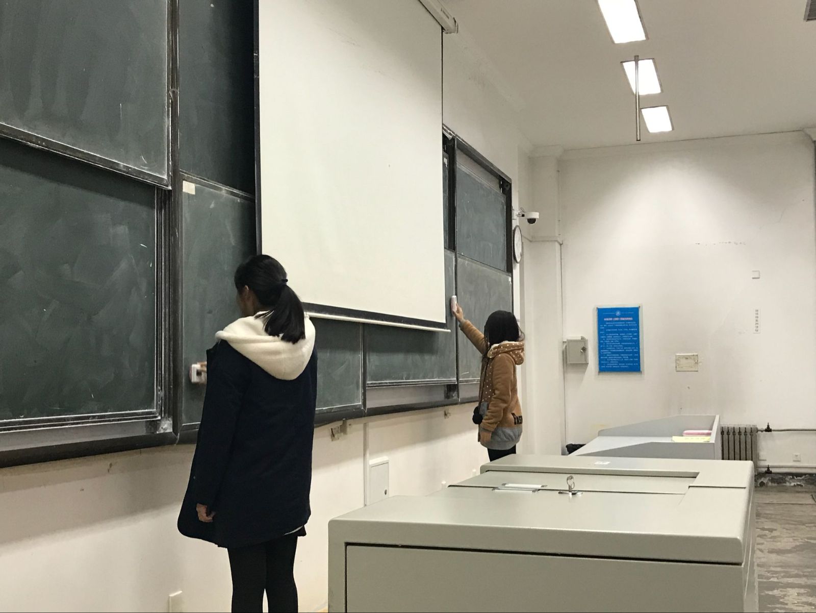 在活动开始前一周,韩炎君在班级下发招募志愿者的通知,并介绍了本次志愿活动的内容及具体要求,全体同学踊跃报名。下午四点整,全体同学在图东教学楼前集合,活动准时开始。首先,韩炎君将同学们按宿舍进行分组,并安排了各组负责的教室。同时着重强调要保持安静,注意安全。随后,各组成员前往组内分配的任务区域,用自己准备的抹布、纸巾等对教室进行清洁打扫。打扫内容包括:清理地面和桌兜内的垃圾,清理并擦拭讲台,擦黑板等。在清理过程中,不少同学反映残留在桌兜和地面上未被带离的饮料杯、用过的卫生纸数量庞大,加大了清扫人员的工作量,并由此对自己以往未及时收走垃圾的类似行为进行了反思。下午六点左右,同学们完成了清理任务,在韩炎君的组织下有序离开教学楼。