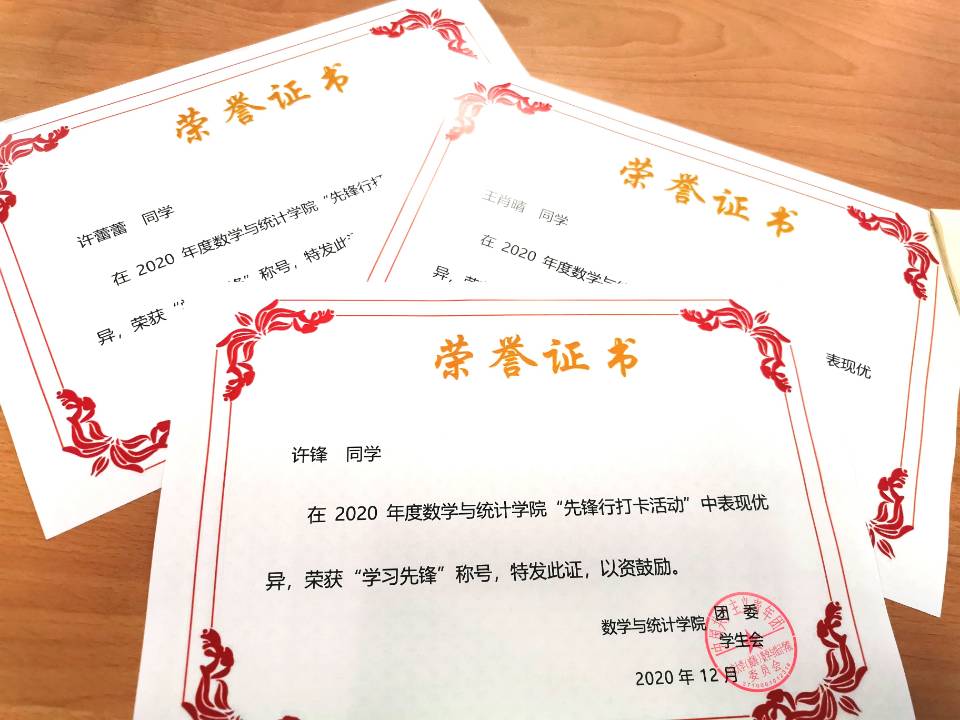 本次先锋行打卡活动依托“四十九天王者成就”活动记录卡与印章、精美礼品、荣誉证书等,带给打卡同学实际获得感,激励同学们坚持良好习惯的养成;通过中期检查与负责人监督,保障同学们的项目完成质量,更好的起到监督引领的作用。最终,先锋行系列打卡活动完成效果良好,在每个打卡群中,同学们诚信积极参与,打卡的秩序井然、氛围热切。本学年共开展10项打卡项目,活动参与人员覆盖bat3652018-2020级三个年级的同学,整体参与率高,最终共有260人次完成打卡,10名同学在本次打卡活动中表现突出,在bat365整体形成了共同努力、健康生活、助人助己的优良风气。