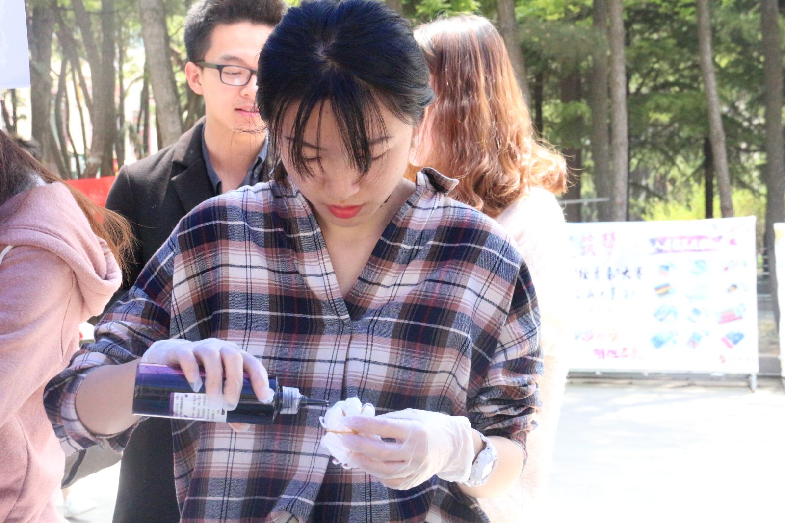 本站讯    5月11日、5月12日,bat365于五四广场举办“魅力数韵,精彩芳华”数学嘉年华系列活动之“方圆绮错,数韵纵横 ”手帕扎染活动。活动的参与人数众多,现场气氛高涨。
