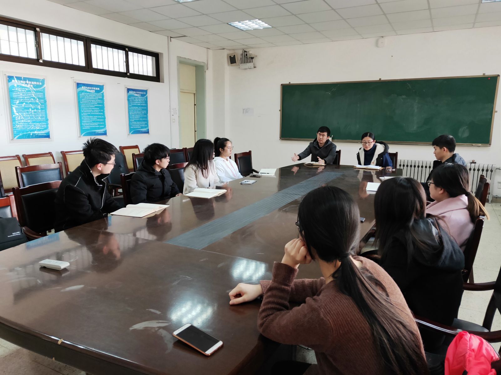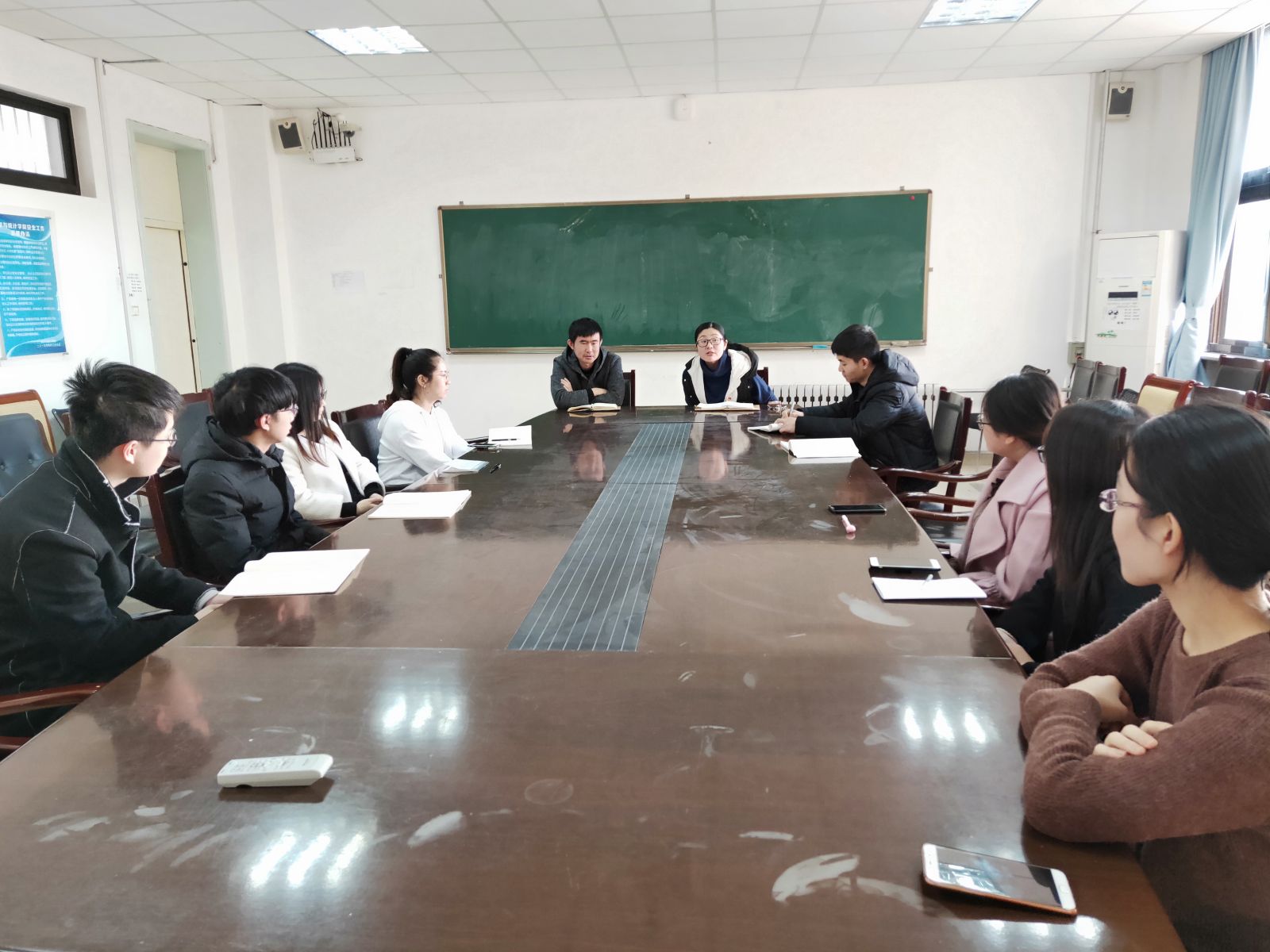 会上,王鹏飞逐一了解了每一位研究生目前的就业方向以及在就业方面遇到的困难,并对研究生提出的问题给予了答复和建设性的意见。王鹏飞同时强调了安全问题以及学术诚信问题,包括生活学习中的安全、心理安全以及意识形态问题,希望各位毕业生身心都得到健康发展,最终顺利毕业。最后,孙磊对此次会议进行了总结,希望各位毕业生同学明确目标,提高能力,主动学习,把握机会。