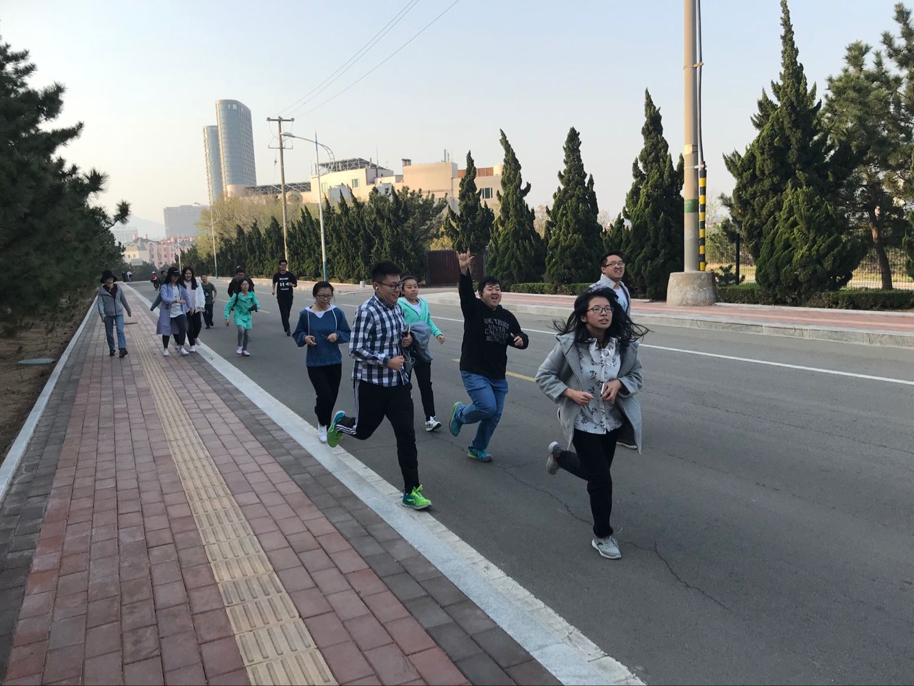 首先,4月19日清晨六点半,bat3652016级全体学生干部以及报名活动的同学准时于蒙牛广场集合后,进行了签到及核对参与人数的工作,准备参加第二次环海路晨跑活动。随后,由体育部成员带领2016级所有参加晨跑的同学从学校西门出发开始环海路晨跑活动。同学们伴着清晨的阳光,迎着温暖的春风,排着整齐的队伍,与蓝天白云同行,与树木为伴,在环海路上一同奔跑。在晨跑途中,同学们彼此互相鼓励,保持着良好的队形和精神面貌,向着目标,向着终点跑去。最终,最后一批同学于七点左右到达学校北门,至此第二次“先锋行之环海路晨跑”活动落下帷幕。