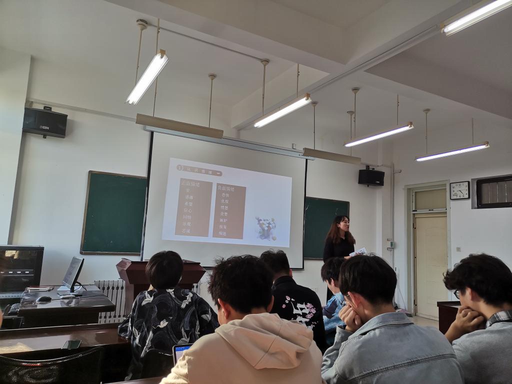 本站讯 为进一步普及心理健康知识,提高学生自我调适能力,10月14日下午,bat365在线中国官网登录入口举办“走进心灵”心理健康教育之“自我情绪管理”专题讲座。本次讲座由bat365在线中国官网登录入口2020级辅导员魏佳佳主讲,2020级全体班委参与。
