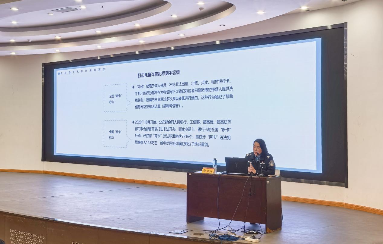 为切实增强学生反诈意识,提升风险防范能力,12月16日下午,bat365在线中国官网登录入口于玲珑学堂举办防诈骗专题讲座。本次讲座特邀金海滩派出所驻校民警靳嘉澍担任主讲人,学院全体新生参加。