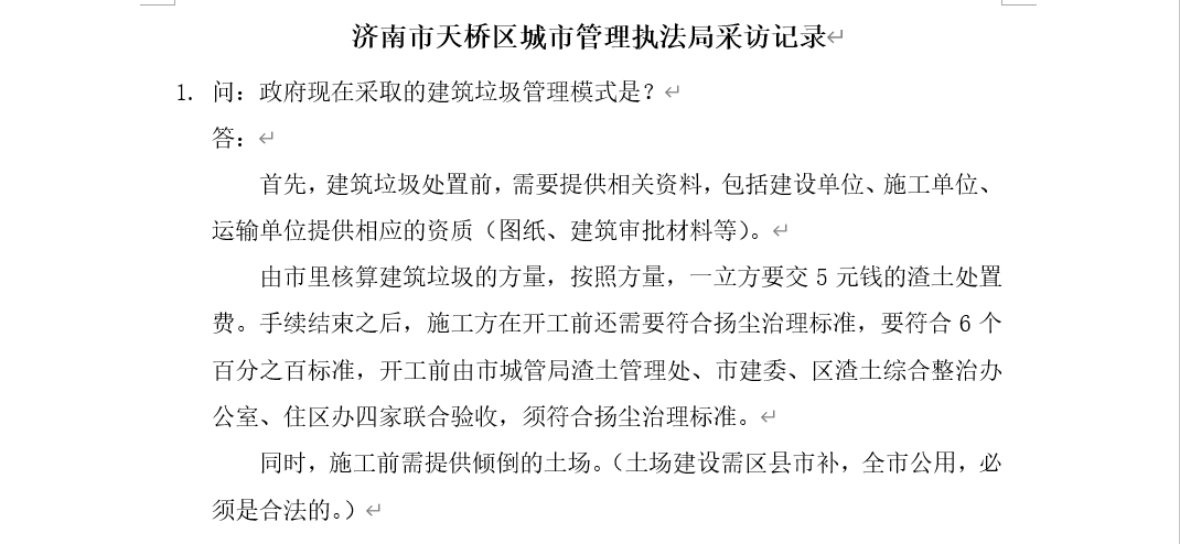 本次线上采访一方面让团队深入了解了威海市、济南市与建筑垃圾治理的相关政府部门在建筑垃圾治理中所扮演的角色,明晰其所发挥的作用;另一方面,更加明确未来建筑垃圾治理的发展方向,推动节能减排工作的落实,促进无废城市的建设。