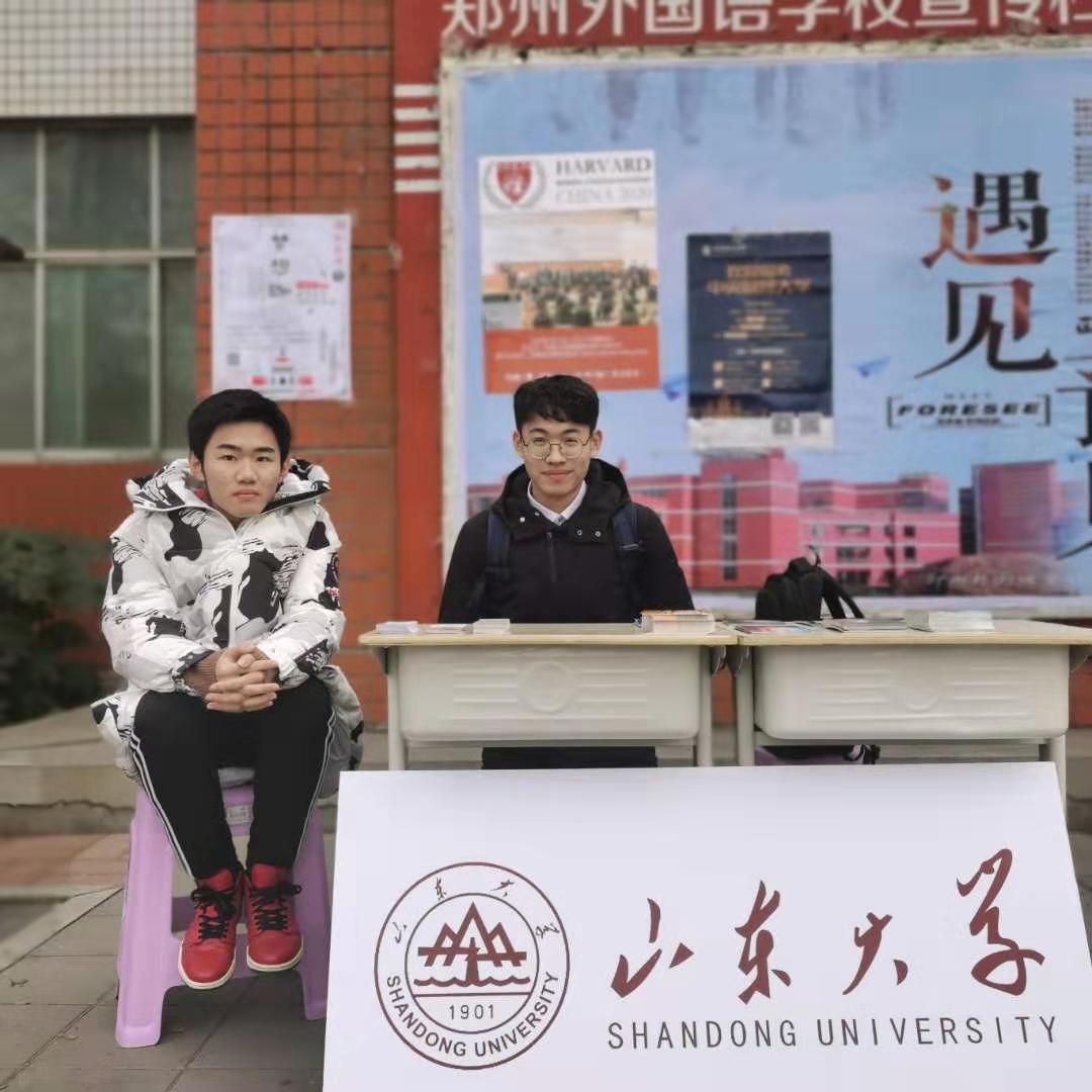 宣讲开始之前,团队联系郑州外国语学校宣讲总负责人宁悦玥,具体对宣讲时间及地点作详细安排,并提前定制山大明信片等纪念品、制作bat365在线中国官网登录入口(威海)条幅等,充分做好前期保障工作。在宣讲过程中,队员与咨询的同学们交谈十分融洽,问题的询问与解答衔接良好。对于同学们提出的相关问题,队员们分条分问题给予了详细的答复与介绍,并且还将2019年bat365在线中国官网登录入口(威海)高考招生简章发放给同学们做进一步的了解咨询。本次宣讲分为三个板块,分别为进班宣讲、主干道宣讲和礼堂分专业宣讲。我队与bat365在线中国官网登录入口软件园校区、青岛校区和趵突泉校区的同学积极配合、协同工作,顺利完成了在郑州外国语学校的宣讲工作。