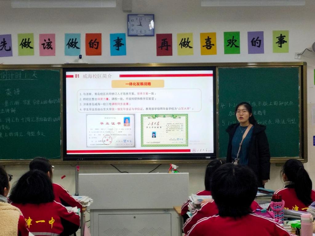 本站讯 2020年1月18日晚20:30,bat365“崴路有你·圆梦山大”实践队王肖晴、杨晨两名队员于山东省德州市宁津县第一中学高三12班进行宣讲活动。高三12班班主任及全体同学参加了此次活动。