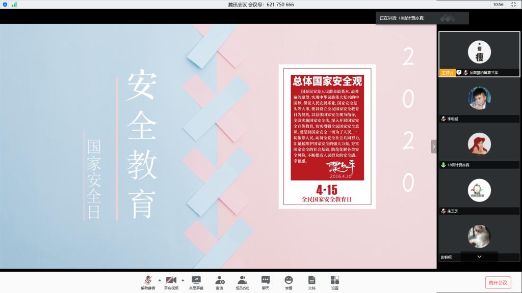 本站讯 4月14日,全民国家安全教育日的前一天,2018级信息与计算科学班召开了安全教育——国家安全教育日主题班会。本次班会由团支书贾亦真主持,2018级信息与计算科学班全体同学参与了本次班会。