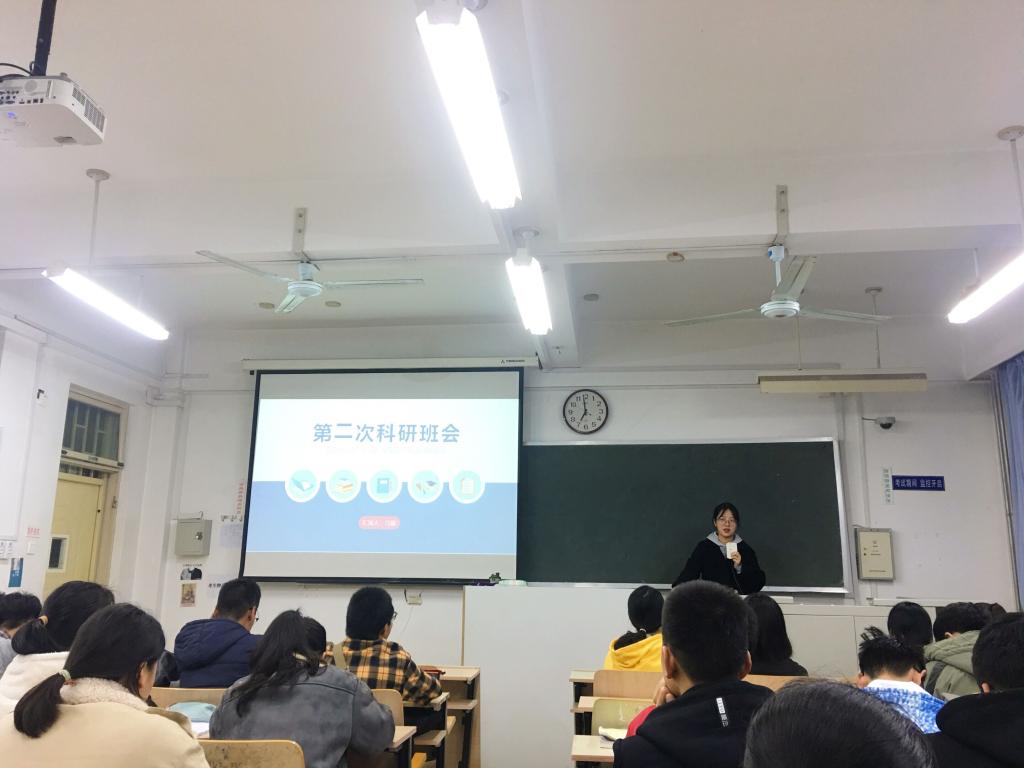 本站讯 2019年11月23日19时至21时,2019级数学3班于图东教学楼115教室组织开展了第二期科研班会,2019级数学3班47名同学参加了本期科研班会,本期科研班会由冯敬主持。