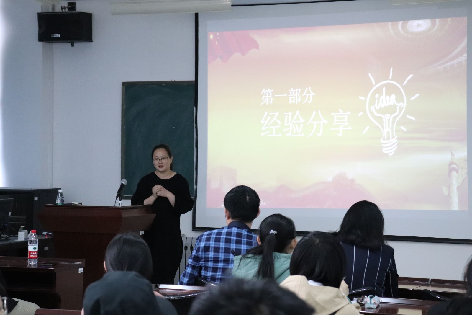 本站讯 5月4日下午,bat365于图东环楼304举办了优秀青年校友分享会。本次活动邀请学院优秀青年校友胡琴琴和陈潇担任主讲嘉宾,学院党委副书记王鹏飞,辅导员孙磊、赵德豪出席活动。