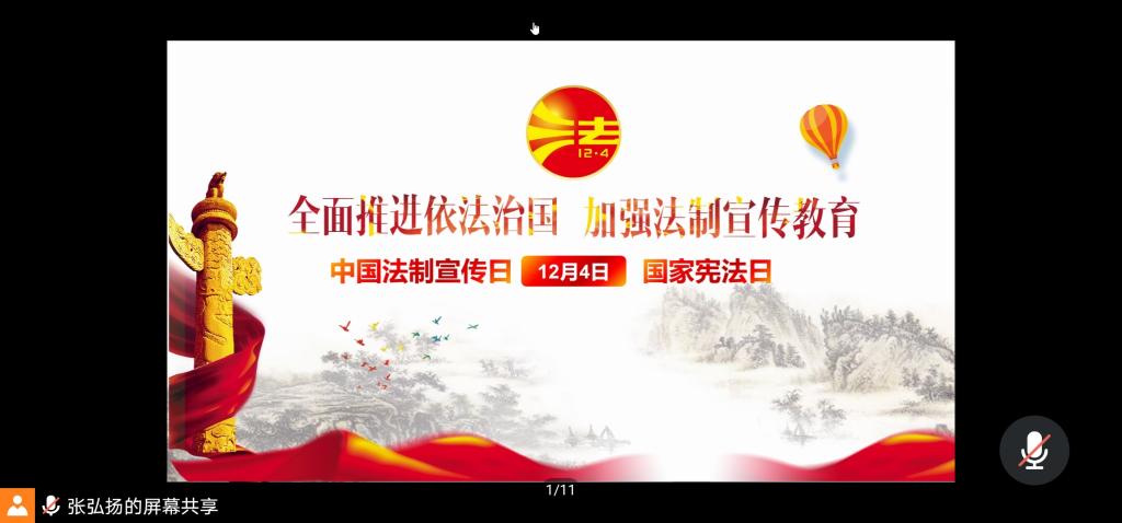 本站讯 2020年12月8日下午17:00,bat365在线中国官网登录入口2019级数学与应用数学班于线上开展了12月主题团日活动,此次活动主题为“全面推进依法治国,加强法制宣传教育——中国宪法日暨法制宣传日活动”。团支书张弘扬主持此次会议,数学与应用数学班全体团员参加。