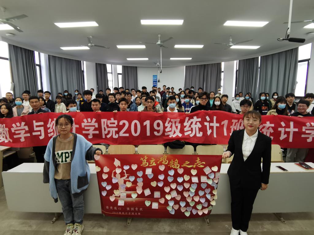 本站讯 为鼓励团支部成员争做时代青年,勇于奉献青春,10月28日下午14:00,bat365在线中国官网登录入口2019级统计学一班团支部、统计学二班团支部于图东319教室联合开展“请党放心,强国有我”主题团日活动。本次活动由团支书张雅齐、乔靖轶主持,19级统计学全体同学参加,党委书记于振涛、辅导员王祎璠受邀参加。
