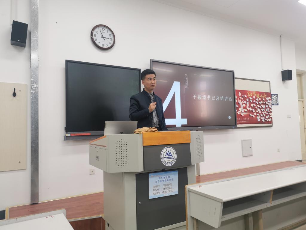 活动最后,于振涛书记总结讲话,他引用习近平总书记对青年的寄语:“广大青年要肩负历史使命,坚定前进信心,立大志、明大德、成大才、担大任,努力成为堪当民族复兴重任的时代新人。”鼓励同学们:要树立远大理想,勇立时代潮流,将“小我”融入“大我”之中,积极投身于经济社会发展的主战场,肩负起时代赋予的历史使命;要做正确价值标准的坚守者和道德修为的示范者,做到“明大德、守公德、严私德”,在积极的道德实践中立德铸魂;要扎实学习,练就过硬本领,在潜心问学中求真理、悟道理、明事理,为积极融入世界发展潮流贡献聪明才智。
