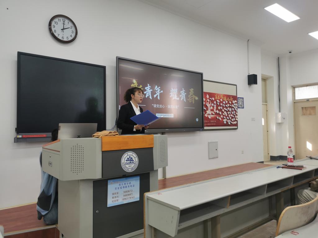 本次主题团日的主要分为“点亮理想之灯”、“笃立鸿鹄之志”和“激扬青春梦想”三个篇章。在“点亮理想之灯”部分,团支部成员利用课余时间观看《社会主义有点“潮”》以及《中外抗疫对比》视频,由两个小组在主题团日中进行学习汇报。第一小组通过“乌托邦是座什么岛?”“《共产党宣言》是本什么书?”“阿芙乐尔号为什么开炮?”“南湖的红船为什么能破浪前行?”“中国特色社会主义特在哪?”“中国梦是个什么梦?”六个问题指出中国特色社会主义的最大特点是集中力量办大事,中国特色社会主义正因为“好”而“特”,同学们应以实现中华民族伟大复兴为梦想,由青年人的志气和骨气。第二小组以我国面对疫情统筹全局、引导舆论、以人为本、尊重科学等原则为根本,进行了中美抗疫对比,充分展现在中国共产党的领导下,我国疫情防控的有力举措和大国担当。“笃立鸿鹄之志”部分,乔靖轶播放山大所属企业研发的多项科技成果展示视频,这些产品运用于各行各业,吹响了山东智造的号角,以此激励作为山大学子的同学们勇于肩负民族使命担当。此外,每位同学都在梦想墙上写下了自己的志向,张雅齐祝福大家得偿所愿,鼓励同学们将青春奉献给党和人民,承担起时代责任。在“激扬青春梦想”部分,机电与信息工程学院马铭、翻译学院聂冰清两位学长学姐通过视频的形式,分别与大家分享了征兵入伍、参与支教的体会和感悟。马铭学长在百里行军中不懈坚持,在拉练中和同伴们相互鼓励,纵使再苦再累也毅然坚持完成;聂冰清学姐为了自己心中的梦想放弃在城市中的安逸生活,去往山西的大山深处帮助贫困地区的孩子们实现读书梦,尽管山路险峻,生活条件恶劣,生活简单朴素,但在和孩子们的交流互动的过程中,她找到了自己真正的追求的理想并愿意一直做下去。他们用自己的青春构筑了属于自己强国理想,他们一步一步、一心一意将理想落实为现实的行为值得每一位同学学习。观看视频后,舒逸林、张雅齐、吴汭、邹沂霖四位同学为大家带来了诗朗诵“十四五再出发”,在他们铿锵有力、激昂奋发的朗诵中,同学们燃起了强国担当的使命感。