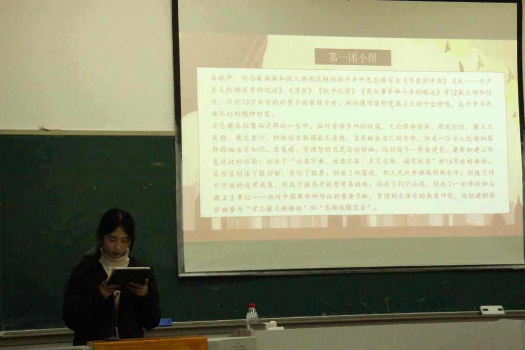 下午17:00,活动准时开始。王肖晴首先介绍了本次会议的目的、要求及具体流程。首先,王肖晴通过一系列丰富精彩的视频向广大同学展示党的十九届六中全会精神,并通过言简意赅的总结带领同学们对党的十九届六中全会精神有了更加深刻的认识和了解。随后,5个团小组分别以小组为单位,向团支部同学们介绍了红色人物以及红色人物的相关事迹,通过介绍农民运动领袖方志敏、志愿军英雄李昌言、革命摇篮胶东乳娘、蓝衣先生张南一、谍战玫瑰沈安娜五位英雄人物,引起了团支部同学们内心深处最炽热的共鸣。根据每个团小组于活动前收集的相关材料,团支书在红色歌曲、影视作品分享环节中向同学们介绍了一系列红色经典作品,例如红色歌曲《唱支山歌给党听》、《鼓浪屿之波》,红色电影《大火种》,电视剧《觉醒年代》等,为广大同学的课余生活提供了丰富的精神食粮。会议的最后,王肖晴播放了电视剧《觉醒年代》的部分片段,带领同学们回顾那段伟人迸发的年代。至此,本次活动正式落下帷幕。